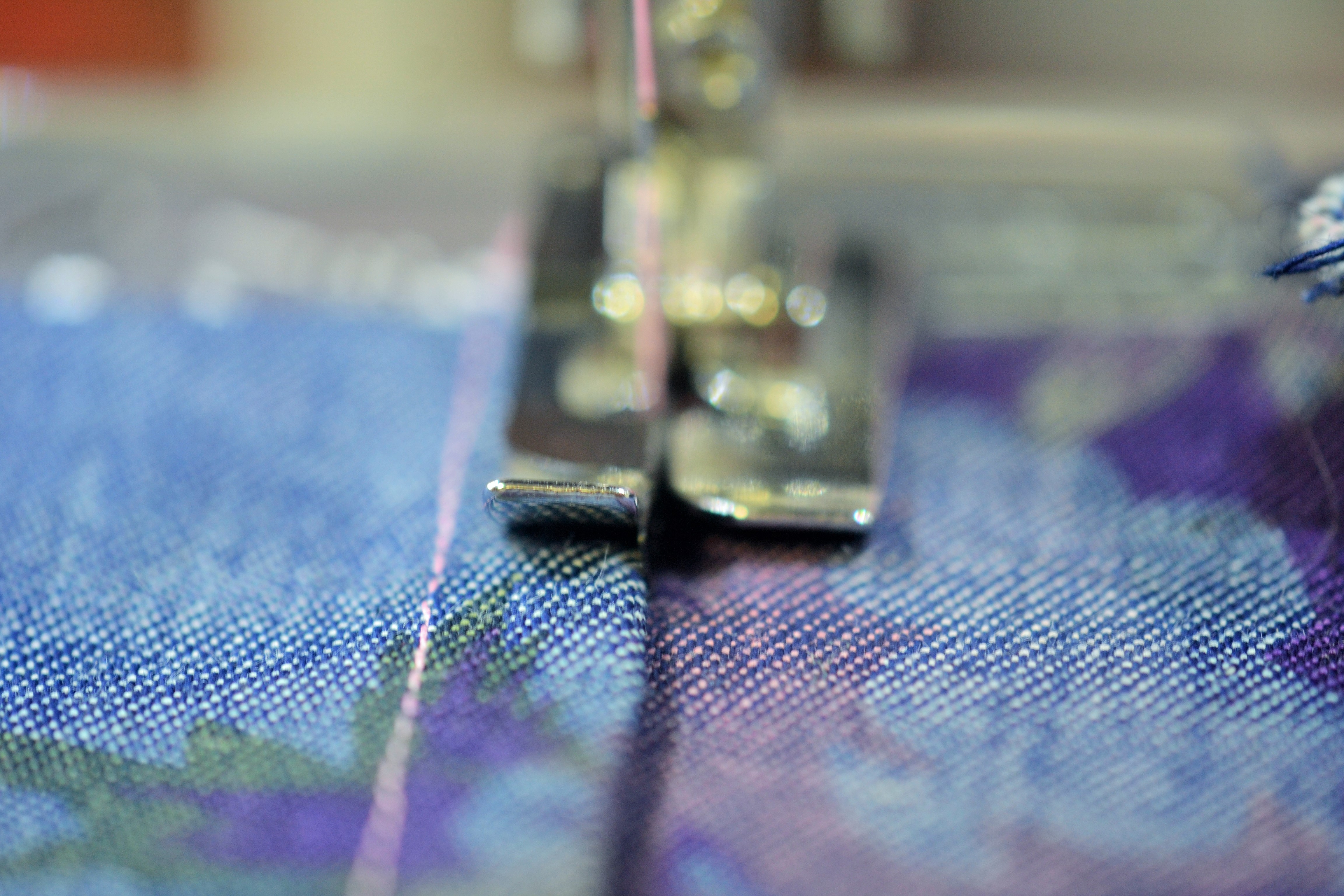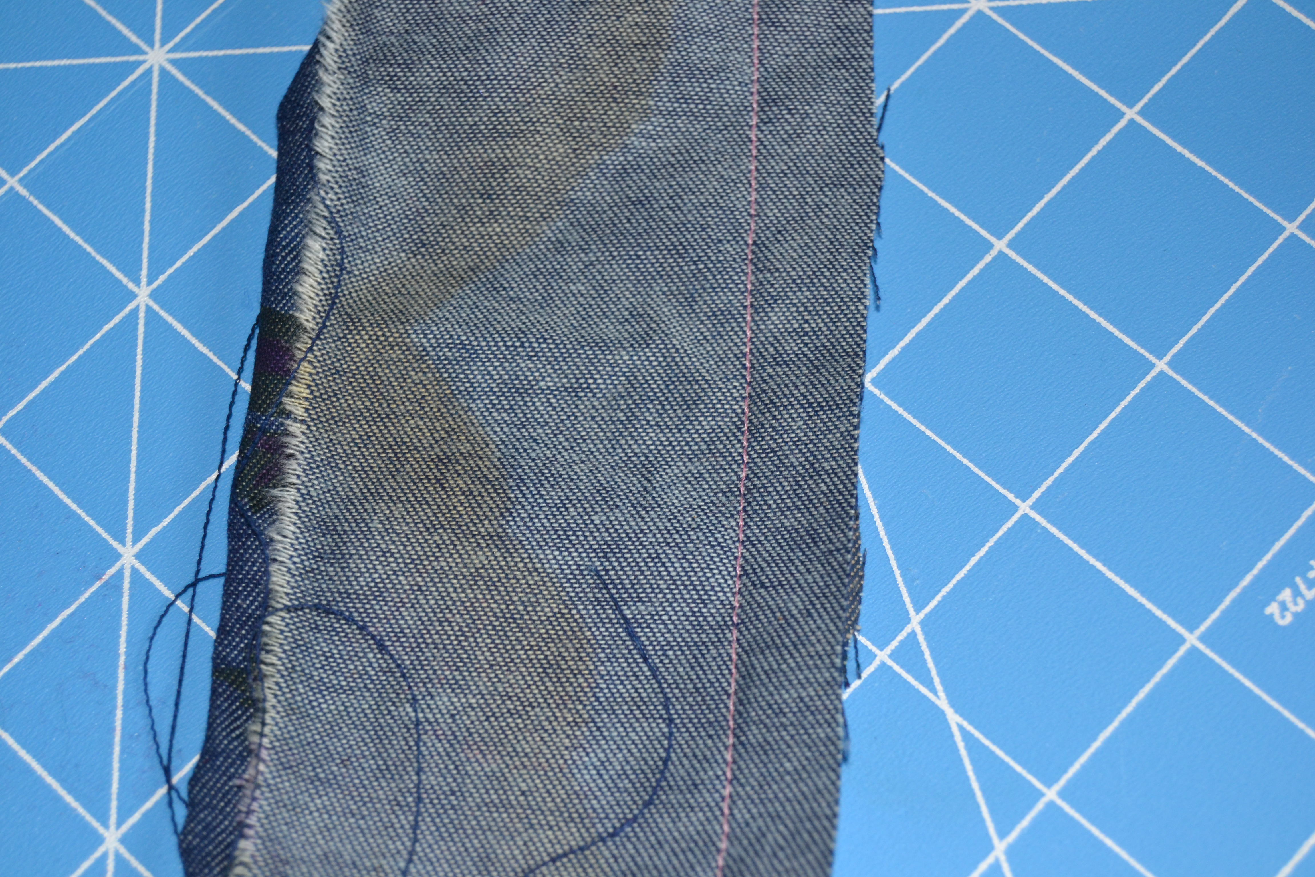 But it’s not that hard to do without it. The minimum seam allowance you need for this seam is 1/2″. If the denim I’m using is heavy, I like a 5/8″ seam allowance. The first step to doing great flat-felled seams is to take some of your fabric and test a couple of seam allowances to see what works best for your fabric. When you’ve found the perfect one, then add whatever you need to the seam allowances of the seams that will be felled. Look at a pair of jeans to see where these seams typically are.