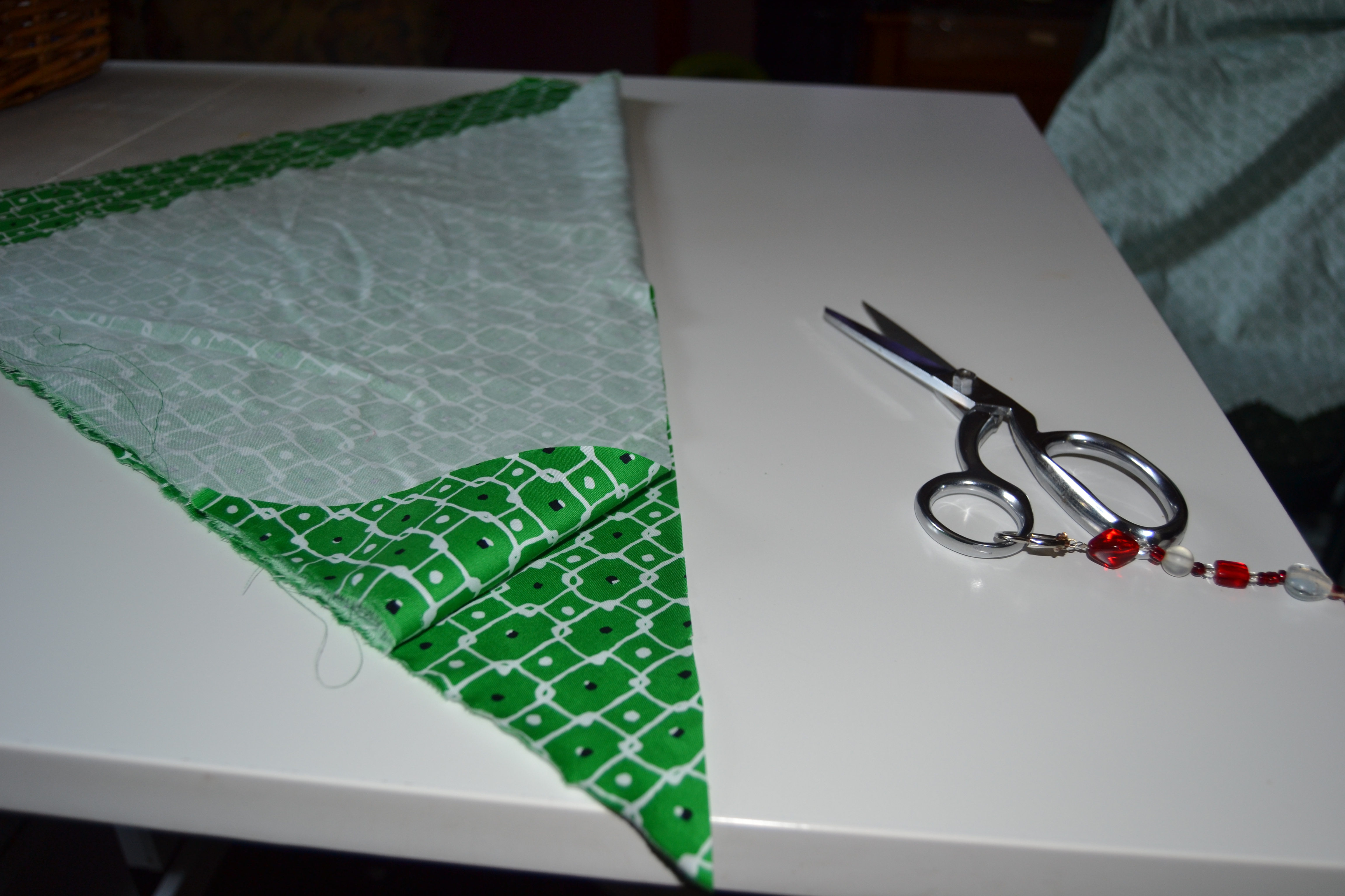 Take the triangle you have and sew it onto the other side so you have a parallelogram. (Aren’t you glad you stayed awake in geometry class?)