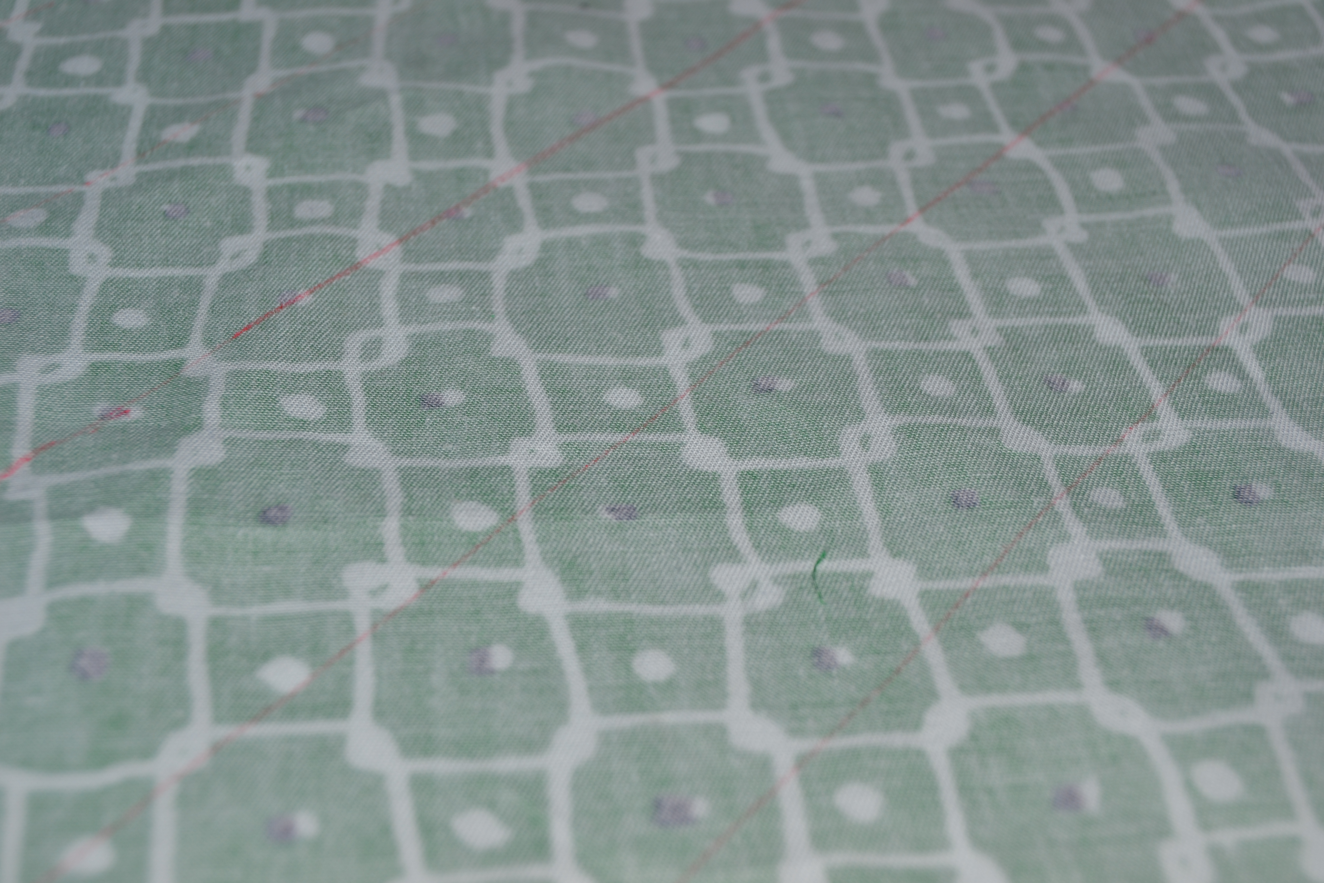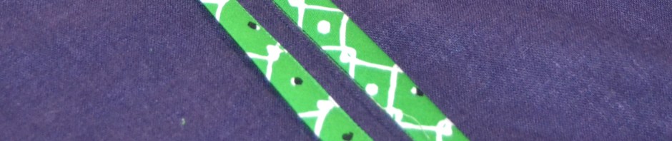 You can use any soft, lightweight fabric to make the bias strips. You want it lightweight enough it doesn’t add too much bulk to the seams, and it should be able to be washed or cleaned using the same methods as the garment itself. If you’re working with scraps, you need to cut strips on the true bias (45 degrees from the straight grain of the fabric). See the post on how to cut out a pattern if you don’t know what that means. The strips should be 1 1/4 to 1 1/2′” wide. If you need to piece them together, sew the seam on the straight grain of the fabric. This will give you a diagonal seam across the bias strip and minimize bulk.