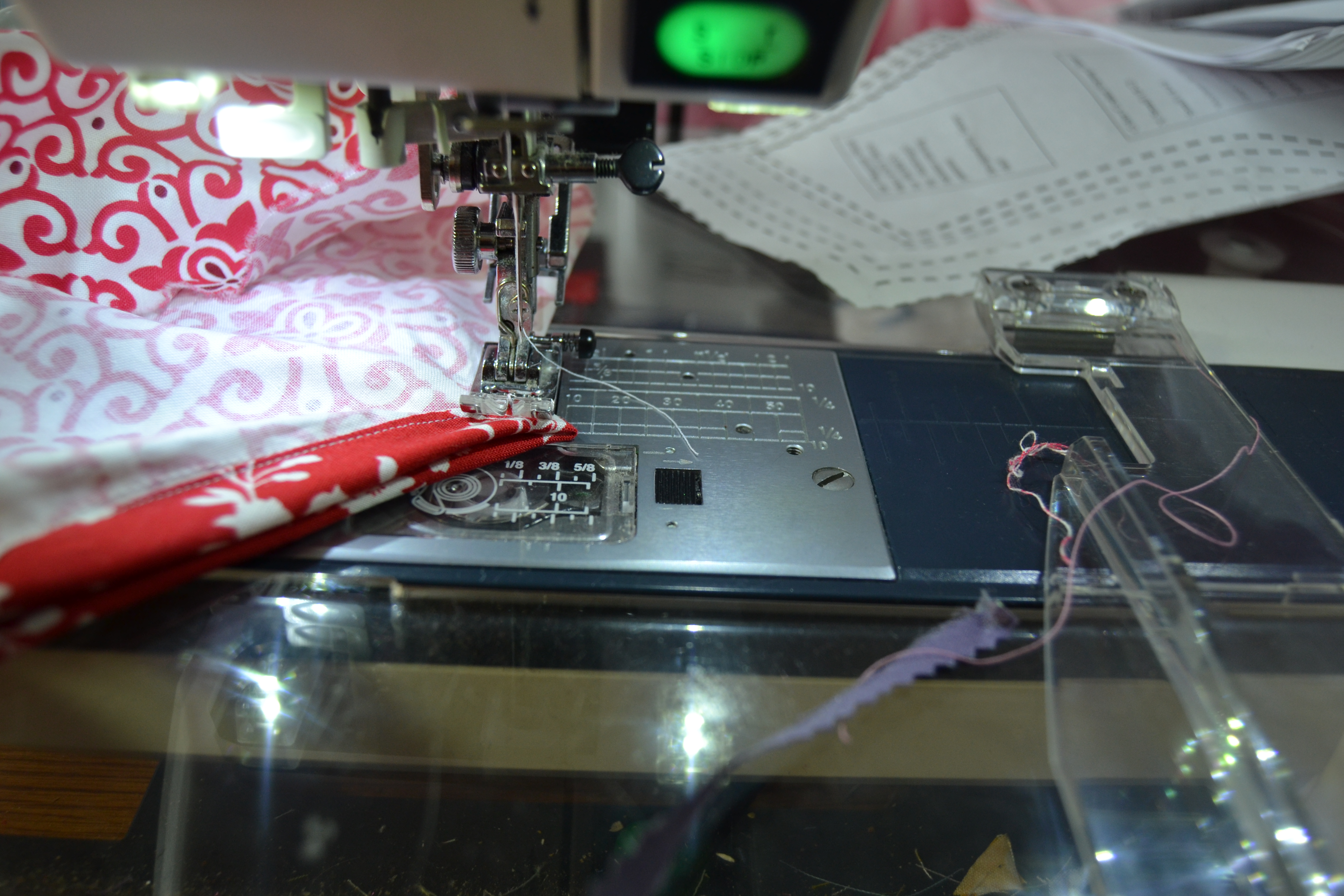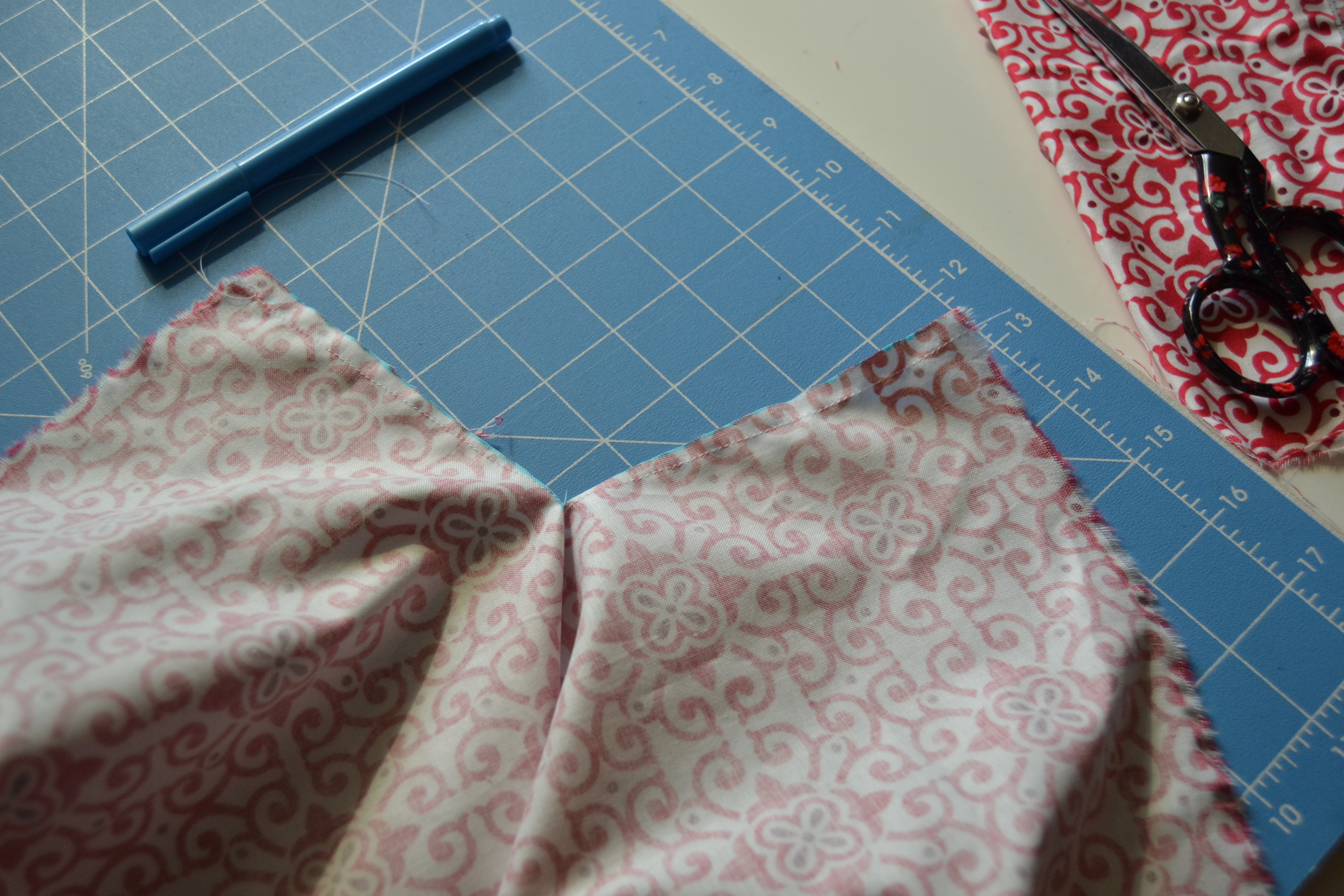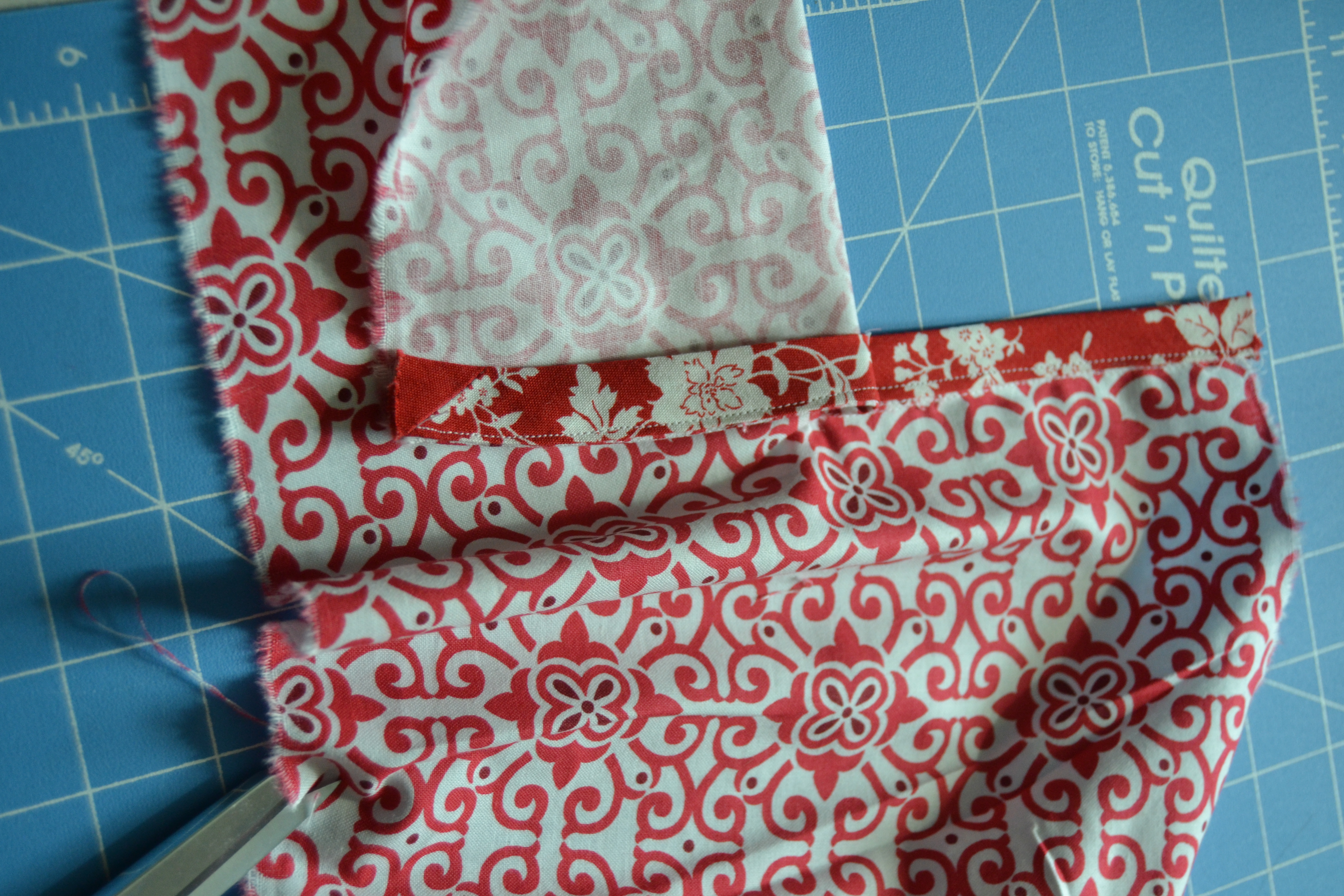 Sew up the other side gradually increasing the seam allowance to 3/8″ again.