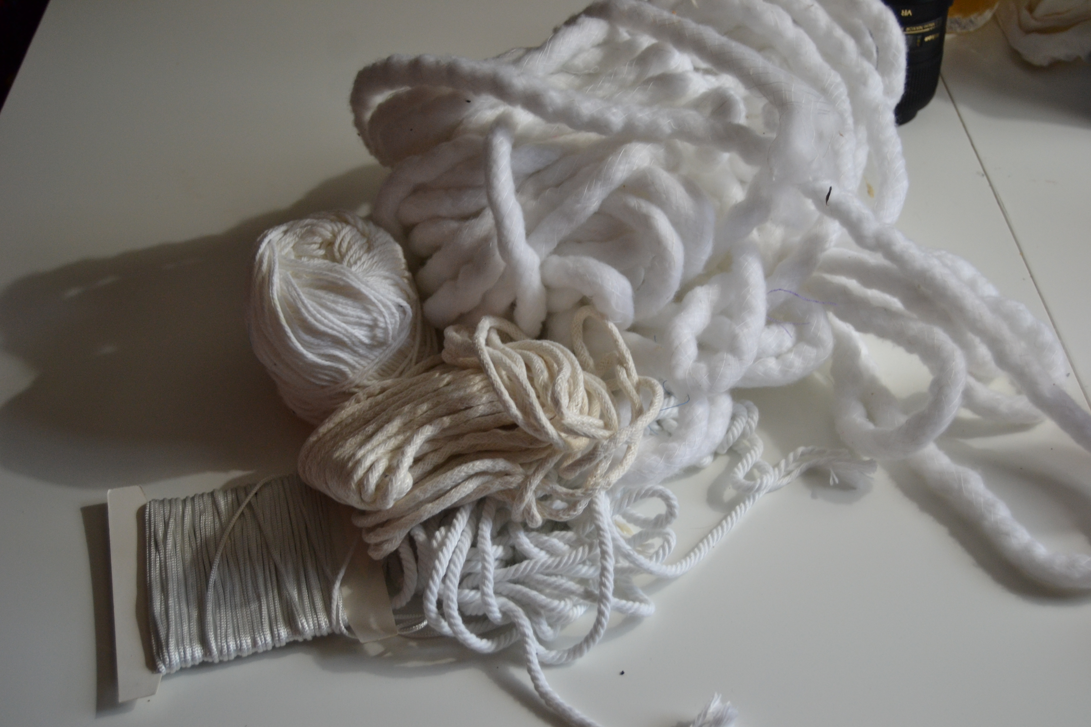 Anything that’s a long string, is flexible, and can withstand the same kind of laundering as whatever you’re making can be used as the filler cord for piping. Here are some of the things I use to make piping: