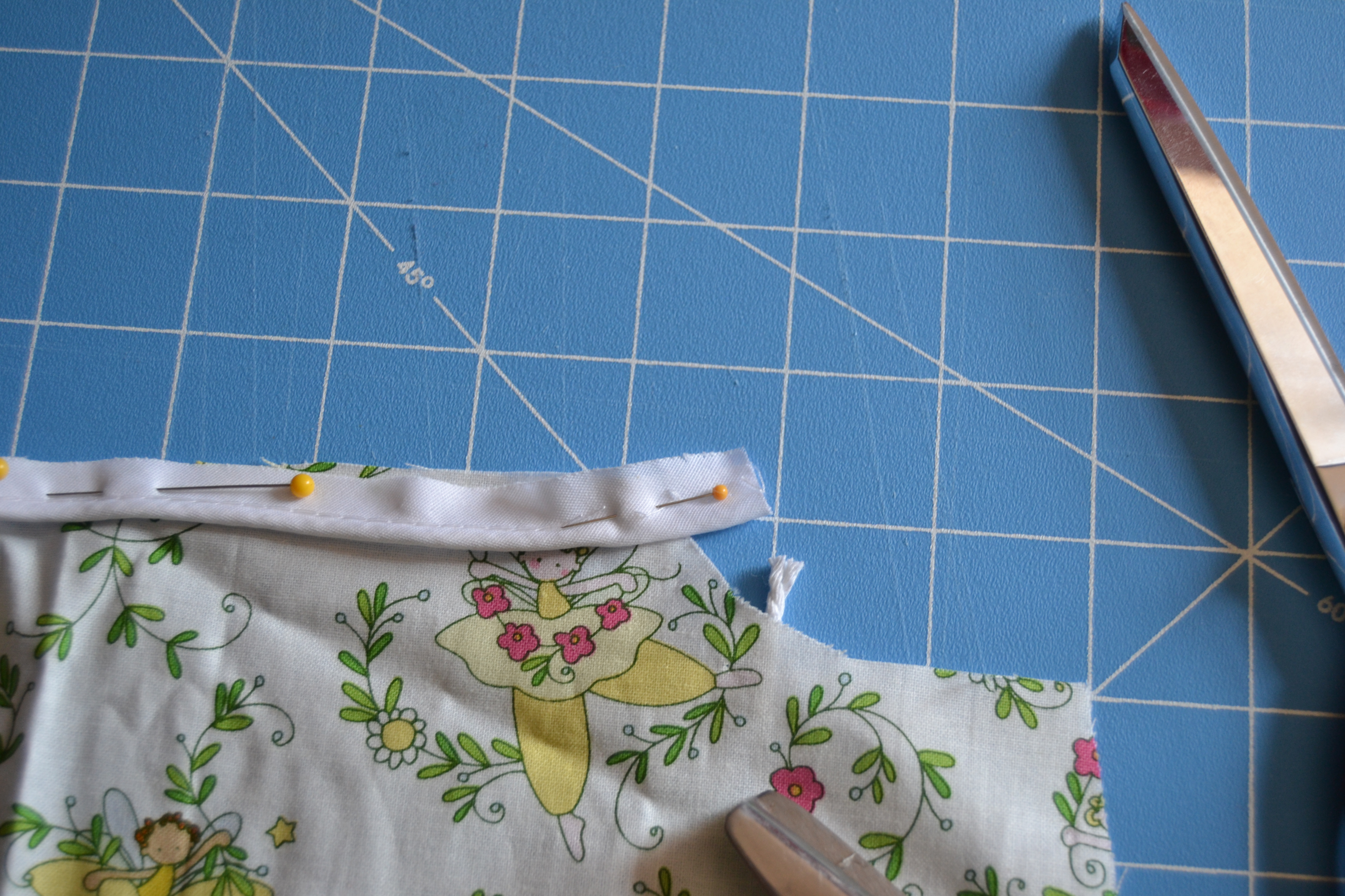 Then curve the bias tape down into the seam.