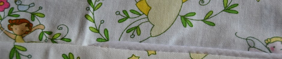 Now fold the ends of on one side of the bias tape over and cover the other end of the piping with it. Unless your piping is really big, you don’t want piping cord under the folded fabric. You’re going to have extra layers of fabric in this spot. and it will hide the join better if there’s not cord under it.