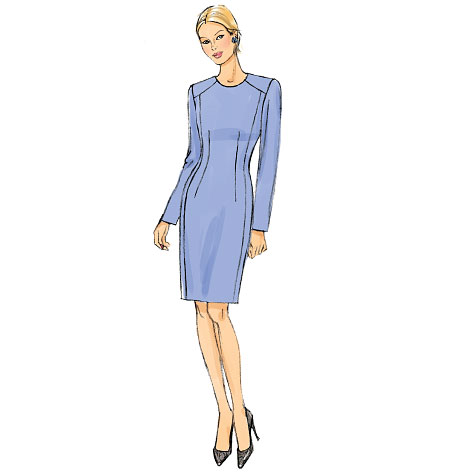 When a pattern is made from a sloper, either by a pattern company or by you, there are two other measurements you need before you start. One is the amount of “wearing ease” a design needs to have to be worn comfortably. We all need to be able to breathe, walk, and sit down. Even if you like to wear your clothes “skin tight”, you still need to be able to do those things. A knit garment with some stretch needs less wearing ease than a woven fabric, but it still needs some. While a design can use some of the stretch in the fabric as wearing ease, you can’t comfortably wear a garment that is stretched to full capacity when you’re standing still holding your breath. You need some “reserve stretch” so you can inhale and exhale. This is an example of a dress with some wearing ease.